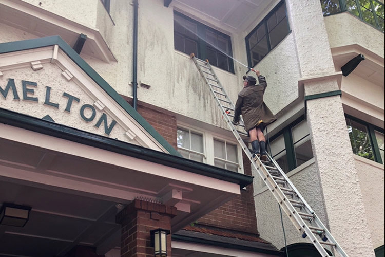 - Soft wash, rinse surface to remove surface dirt applicate detergents, your property is given a comprehensive brush from the gutters down. We don’t cut corners we clean them!
